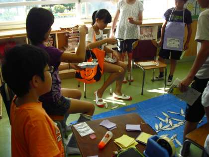 5年生は川場移動教室で調べたこと、実際にやったことに関連したゲーム「マス釣り」などをやっていました。