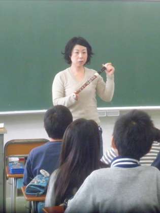 長塚さんは、手が不自由でも使えるリコーダーや跳び縄を持ってきてくださってとてもわかりやすいお話をしてくださいました。