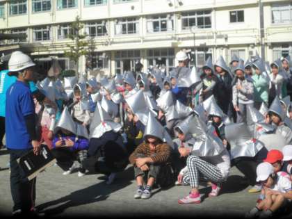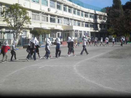 毎月一回の避難訓練です。今日の「想定」は「理科室が火事」でした。避難訓練は、想定が火事の場合、地震の場合、不審者の場合と色々あります。また。火事の場合には、出火場所が、主事室、家庭科室、職員室などいろいろです。どんな場合でも、どう対応して避難するかが大切です。毎月、どの子どもたちも真剣に訓練に取り組んでいます。