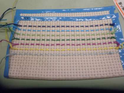 つくし学級の生活単元の学習で「ししゅう」をしています。規則的に布に糸を通してきれいな模様をつくします。