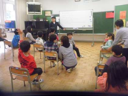 つくし学級で「お楽しみ会」についての話し合いをしています。どんな出し物をするのか意見を聞いています。自分の考えをしっかり発表している子どももいます。
