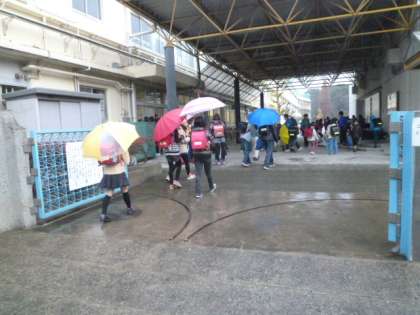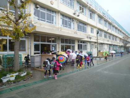 12月9日(月)から14日(土)までの6日間、烏山小学校の12月の「あいさつ週間」です。傘をさして登校してくる子どもたちからは、元気な声での「おはようございます!」が聴こえてきました。正門前を通って学校に通う上祖師谷中学校の生徒のみなさんからも朝の気持ちのよいあいさつが届いてきます。