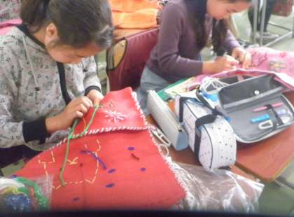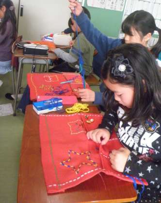 終わった子どもたちは、雑巾作りに励んでいます。みんな、針の使い方が上手になりました。