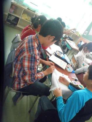 5年生の家庭科の学習です。ウォールポケット作りが終盤になってきているようです。みんなデザインや色を工夫して素敵な作品ができています。