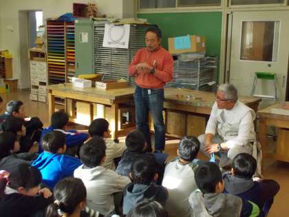 教科「日本語」の「日本の伝統・文化にふれよう」の学習として、「わら細工」体験をしました。上祖師谷郷土研究会の方々に藁紐のつくり方を習い、クリスマスやお正月の飾りをつくりました。