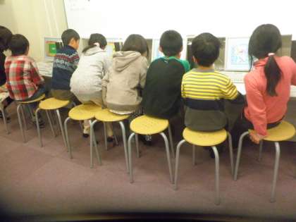 3年生が、習ったローマ字を使ってパソコンでローマ字入力で字を打つ練習をしています。ゲームでいろいろな字を打っていくのでみんな真剣です。
