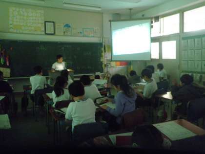 4年生は、創立140周年記念でPTAから寄贈された学級置きのプロジェクターを使って、調べたことを発表しています。情報機器を有効に使って学習を進めています。
