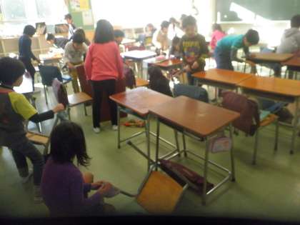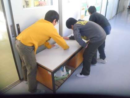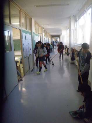 長い2学期を終えて、教室の大掃除です。机や棚、廊下、給食台など使ったものをきれいに掃除しています。みんな一生懸命に取り組んでいます。