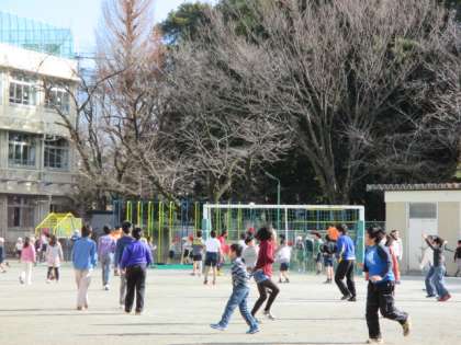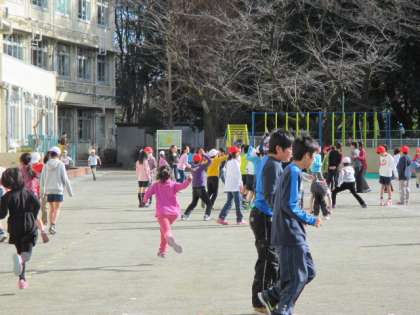 今日の中休みの様子です。たくさんの子どもが校庭へ出て元気に遊んでいます。今日はこの冬一番の寒さと言っていますし、北風も冷たいですが、みんな元気に遊んでいる様子を見ると、うれしくなります。やはり「子どもは風の子」ですね。
