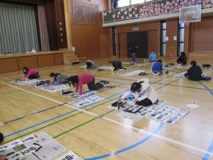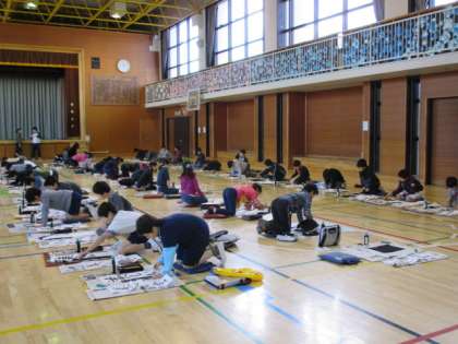 今日は、4年生と5年生の席書会です。体育館に入っても話す声が聞こえないぐらい、静かに取り組んでいます。新年を迎えて心を清らかに平常心で取り組んでいる姿は立派です。