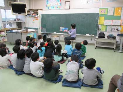 読み聞かせの本は、おはなし泉の会の方々が、子どもの興味を考えてくださって選んでいるようで、みんなお話を真剣に聞いています。