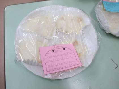 今回は、自分達の蒸しパンの他に、お世話になった方々にお礼を込めて、メッセージと一緒に蒸しパンを配っています。