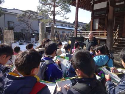 寺町の見学を通して、子どもたちはそれぞれの寺院に由来や歴史があることを学ぶことができました。