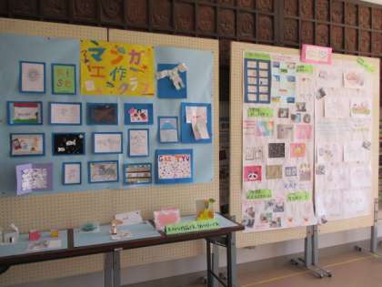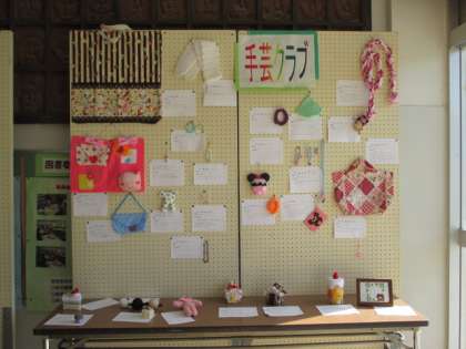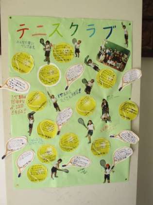 手芸クラブ、パソコンクラブ、テニスクラブ、マンガ・工作クラブ、テーブルゲームクラブなどは、第三昇降口に展示発表しています。