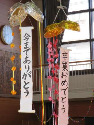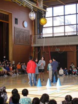 今日の1,2時間目は6年生を送る会でした。6年生が、くす玉を割り、校長先生のお話がありました。
