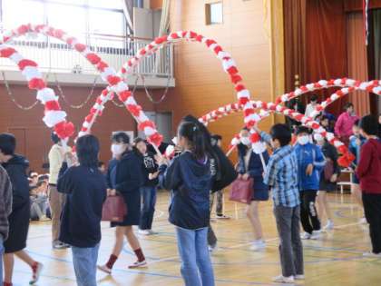 会が終わると、花のアーチをくぐって退場です。どの学年もいろいろと工夫して楽しい出し物ができました。