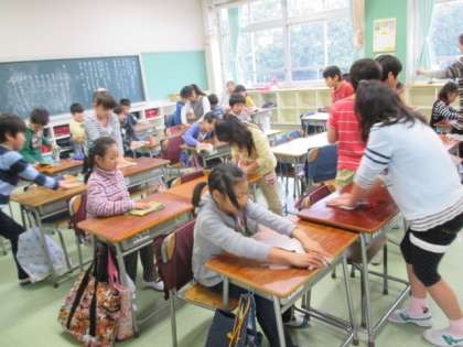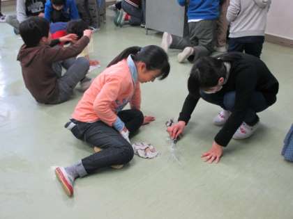 今日は、大掃除です。1年間使った教室を感謝の意味も込めてしっかりお掃除しています。机もきれいに拭いています。床も力を込めてしっかり磨いています。1年間本当にありがとう。