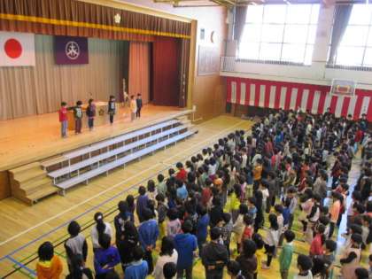 今日は、平成25年度の修了式でした。各クラスの代表が、舞台に立って修了証をもらいました。校長先生のお話は、3学期の始業式に話した「あいさつをしよう」「ともだちを大切にしよう」についてのお話と春休みにしてほしい3つのことについてのお話でした。