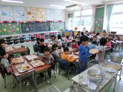 子どもたちが楽しみにしていた給食が始まりました。