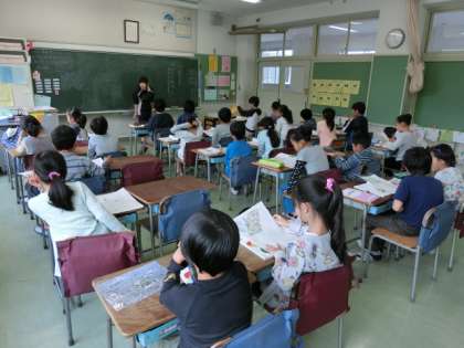さて、1年生にとっては初めての授業公開でした。たくさんのおうちの方々が参観していました。子どもたちはちょっぴり緊張気味。それでも一生懸命学習に取り組んでいました。