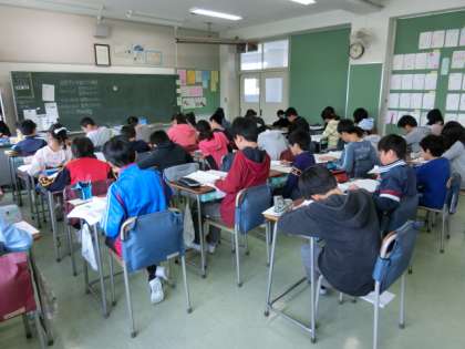 今日の午前中、6年生を対象とした「平成26年度全国学力・学習状況調査」が行われ、教科に関する調査(国語・算数の2教科)と生活習慣や学習環境等に関する質問紙調査に取り組みました。