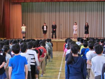 昨年度までお世話になった教職員と子どもたちのお別れの会「離任式」を6校時に体育館で行いました。