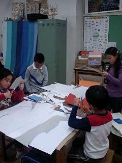 厚紙で関節が動かせる、自分と同じ大きさの人形です。ハサミの使い方も慣れてきました。