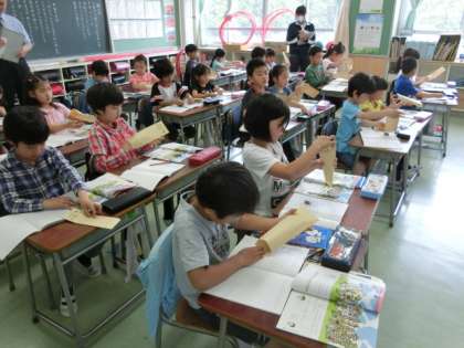 学習のまとめは、実際の生活場面と結び付け、子どもたちの思考場面を広げていました。
