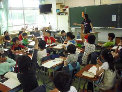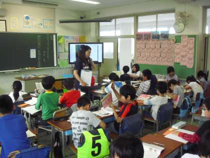 この単元の第1回目の学習です。今日のめあては、「教材文を読み、初めて気づいたことや考えたことを書いて伝え合う」です。始めに担任は、花火大会のDVD映像を映しました。そのことにより、児童は学習への意欲が高まりました。