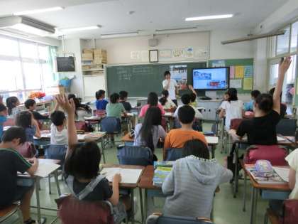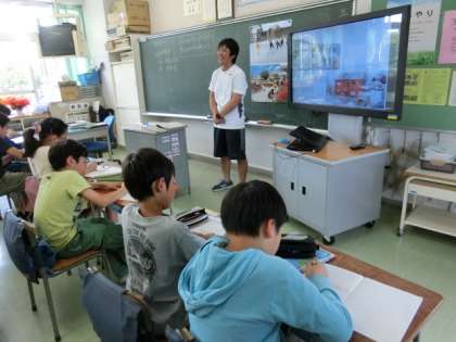 写真、グラフ、地図などの提示を電子黒板で行うことで、子どもたちも興味・関心をもち学習に取り組んでいました。