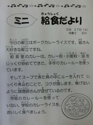 ぜひ、お子さんに「今日のミニ給食だよりはどんなことが話題になっていたの?」と尋ねてみてください。印象に残っていることと思います。