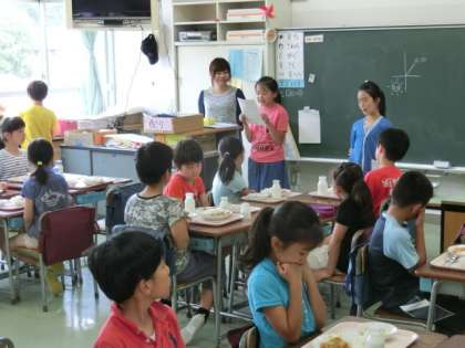 3年生の教室では、配膳の後、担当の子どもがミニ給食だよりを読んで紹介し、「いただきます!」のあいさつをして、おいしくいただいていました。