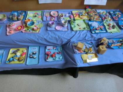 3年生の作品はカラフル粘土を使った「カラフルねんど土のお店へようこそ!」です。
