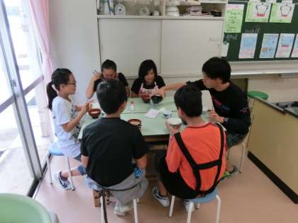 担任の先生と試食をさせていただきました。とてもおいしくでき上がっていて、子どもたちもみんな、にこにこ顔。また一つ、調理メニューが増えた子どもたちです。