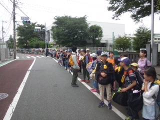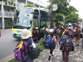 仙川駅近くで学級ごと3台のバスに乗り、予定通り出発しました。