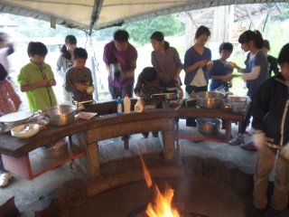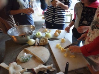 グループで分担してカレーライスづくりが始まりました。どの班もチームワークはばっちりです。おいしいカレーライスをめざして頑張っています。