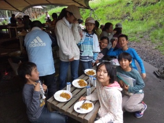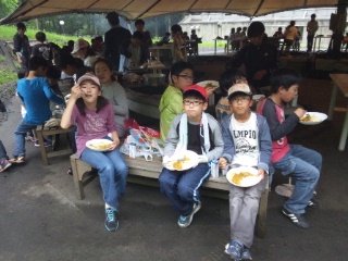 元気な、そして大きな声が響き渡りました。どのグループのカレーライスも大成功!世界一のおいしいカレーライス。嬉しさいっぱい、笑顔いっぱいの子どもたちです。