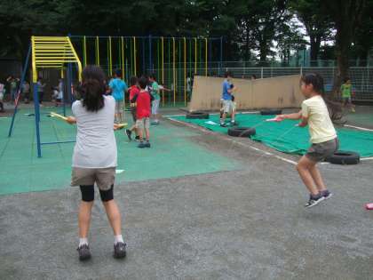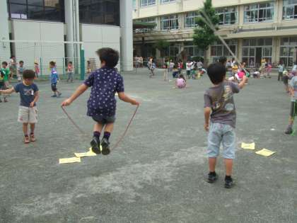 6月9日(月)から6月20日(金)まで縄跳び旬間(短縄跳び)として、朝・休み時間・体育の時間に「なわとびカード」をもとに縄跳びの練習に取り組んでいます。朝に行うジャンピングタイムでは、異学年で交流をしながら協力して練習をしています。また晴れた日の休み時間には、校庭で児童がお互いに競い合いながら縄跳びの練習をする様子が見られました。