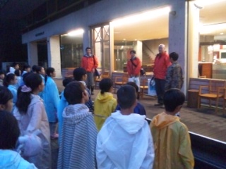 ふじやまビレジの3名のガイドにより、約1時間、ビレジの周辺を散策しました。周辺で生息する動物、真っ暗な中で役に立つ聴覚や嗅覚、視覚の働きなどについて、たくさん学びました。あるグループでは、シカの接近と鳴き声に出逢いました。まさに心と体で素敵な体感ができた瞬間でした。宿舎に戻り、シャワー、班長会議、検温、健康観察を行い就寝しました。おやすみなさい!
