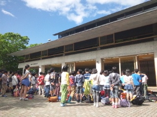 閉室式をお祭り広場で行いました。宿舎の方々にお世話になった感謝の気持ちを伝えました。これから村めぐりに出発します。