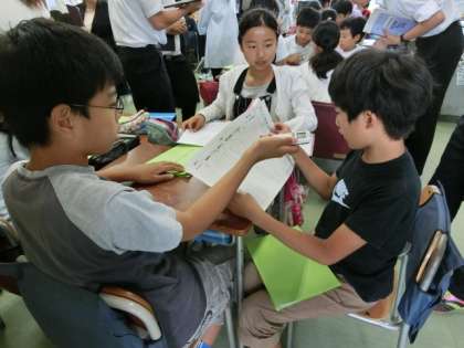 今日は6年2組で、国語科「目的や意図が伝わるように話そう」の研究授業を行いました。主体的に学ぶ意欲をもたせるため、また、教え合い学び合う力を育てるための工夫として、ICレコーダーをグループ活動で、全体学習で実物投影機を活用した授業を行いました。子どもたちは、自分たちで作ったニュース原稿を録音して聞き合い、意見を交換したり、原稿をよりよいものに修正したり意欲的に学習に取り組んでいました。授業の後、協議会を開き講師の先生からICTを活用した授業づくりについて学びました。