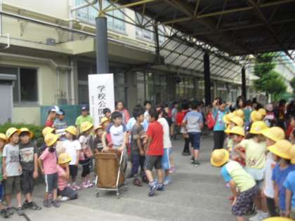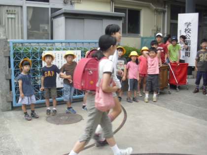 学校生活に慣れ、いつも上級生から声をかけてもらっていた1年生が、17日(火)に、朝のあいさつ声かけ隊としてデビューしました。