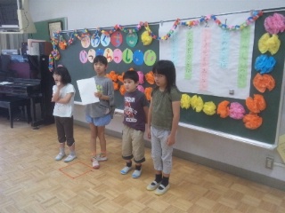つくし学級4・5・6年生が、二泊三日の河口湖連合移動教室に出発しました。教室で1・2・3年生が「いってらっしゃい!」の会を開き、見送ってくれました。元気よく出発です。