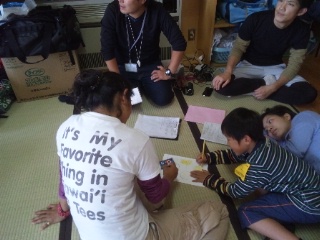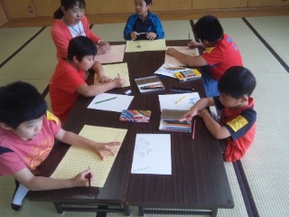 午後2時少し前に学園に戻りました。紅葉台ドライブインで、自分のお小遣いで、家族へのおみやげを買いました。今、部屋で、ハイキングの感想を文と絵でカードにまとめたり、夜の子ども会の練習などをしたりしています。