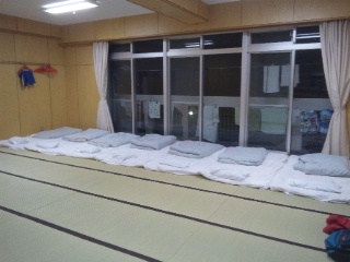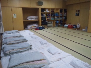 子ども会中の男子の部屋「朝霧」のと男子浴室の様子です。男子は芦花小学校の友達と、夜は一緒に寝ています。