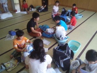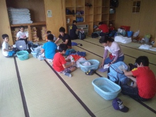 「おはようございます!」三日目の朝を迎えました。6時半に起床し、検温、洗面、着替え、そして布団の片付けをしました。今、荷物整理中です。よい天気です。富士山が部屋から見え、子どもたちも喜んでいます。