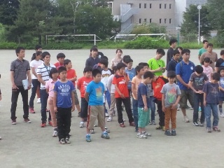 朝会の前に、園庭で写真撮影をしたり湖畔に出て水に触れたりしました。その後、全学級が集まり朝会を行いました。今日も予定通りのプログラムで進めて行きます。天候に恵まれた三日目です。