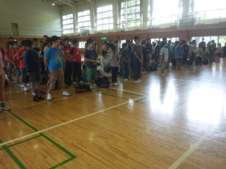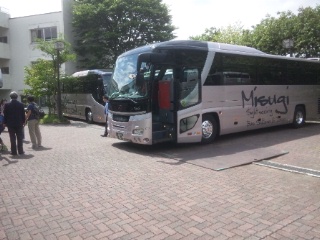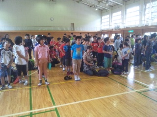 三日間の河口湖林間学園での生活を終え、閉園式を行い出発しました。恩賜林庭園に向かっています。