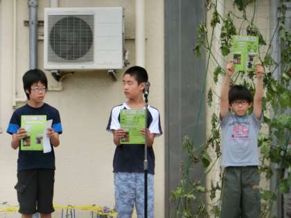 次に、エコ委員会からPTAエコ委員会と連携・共同して行う「スマイルアフリカ・プロジェクト」についての説明と協力へのお願いが伝えられました。身近にある履いていない靴や使っていない靴(原則としてスニーカー)などを集めアフリカの友達や人々に届けよう、という取組です。一昨年度から本校で取り組んでいる活動です。子どものエコ委員会では、3日(木)に製作したポスターをもって各教室で説明をする予定です。