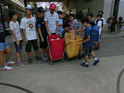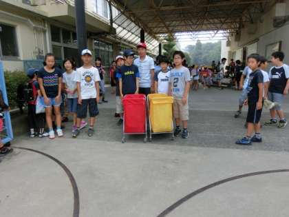 今朝も、たくさんの人が家から持ち寄り、回収ケースに入れていました。保護者のみなさん・地域のみなさんにも協力をしていただいています。